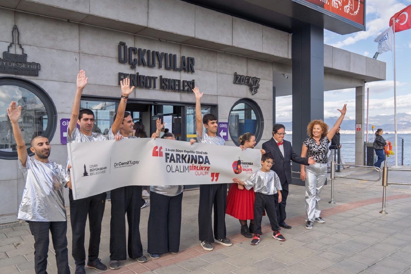 Engelli bireyler için toplu taşımadan kültür sanata, her alanda eşit ve erişilebilir imkânlar sağlamak amacıyla çalışmalarını sürdüren İzmir Büyükşehir Belediyesi, 3 Aralık Dünya Engelliler Günü kapsamında hafta boyunca çeşitli etkinlikler düzenleyecek. Bu yıl uğur böceği logosuyla görünen ve görünmeyen engelliliklere dikkat çekilecek. Etkinliklerin ilki Konak Meydanı’nda bulunan Saat Kulesi önünde ve kentteki vapur iskelelerinde gerçekleştirildi. İzmir Büyükşehir Belediyesi’nden hizmet alan farklı engel gruplarından yurttaşlar, dans performansı sergiledi. Yurttaşların ilgiyle takip ettiği dans gösterilerinin sonunda, “Farkında olalım, birlikte olalım” yazılı pankart açıldı.