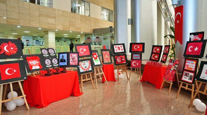 İzmir Adliyesi protokol alanında gerçekleştirilen sergide 17 kız ve 24 erkek öğrenci, cumhuriyetin anlam ve önemini kendi dünyalarında yansıtan resimlerle yer aldı. Anaokulu öğrencileri ise kendi hayal dünyalarından Mustafa Kemal Atatürk'ü, Cumhuriyet'i ve Türk bayrağını resmetti.