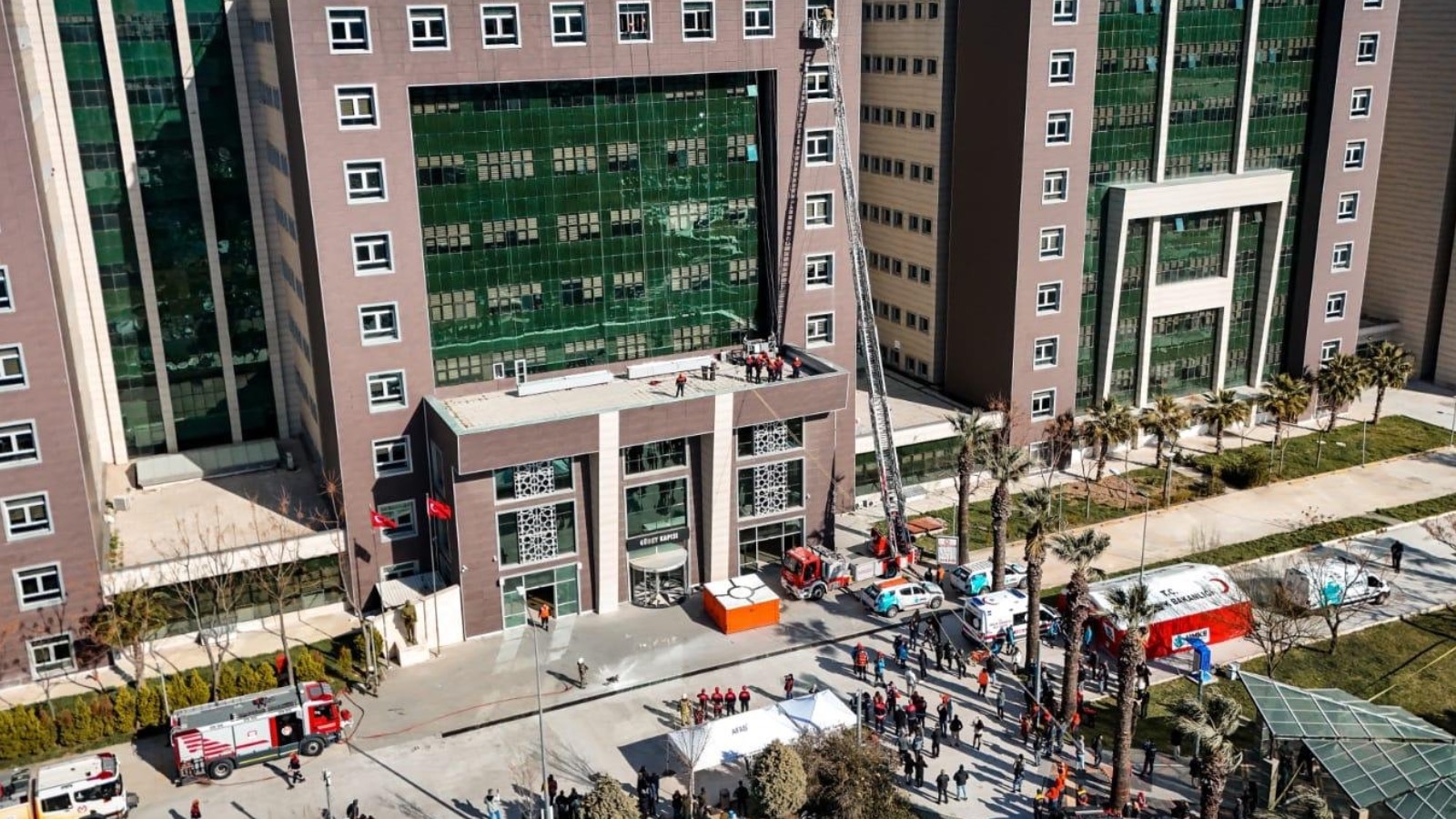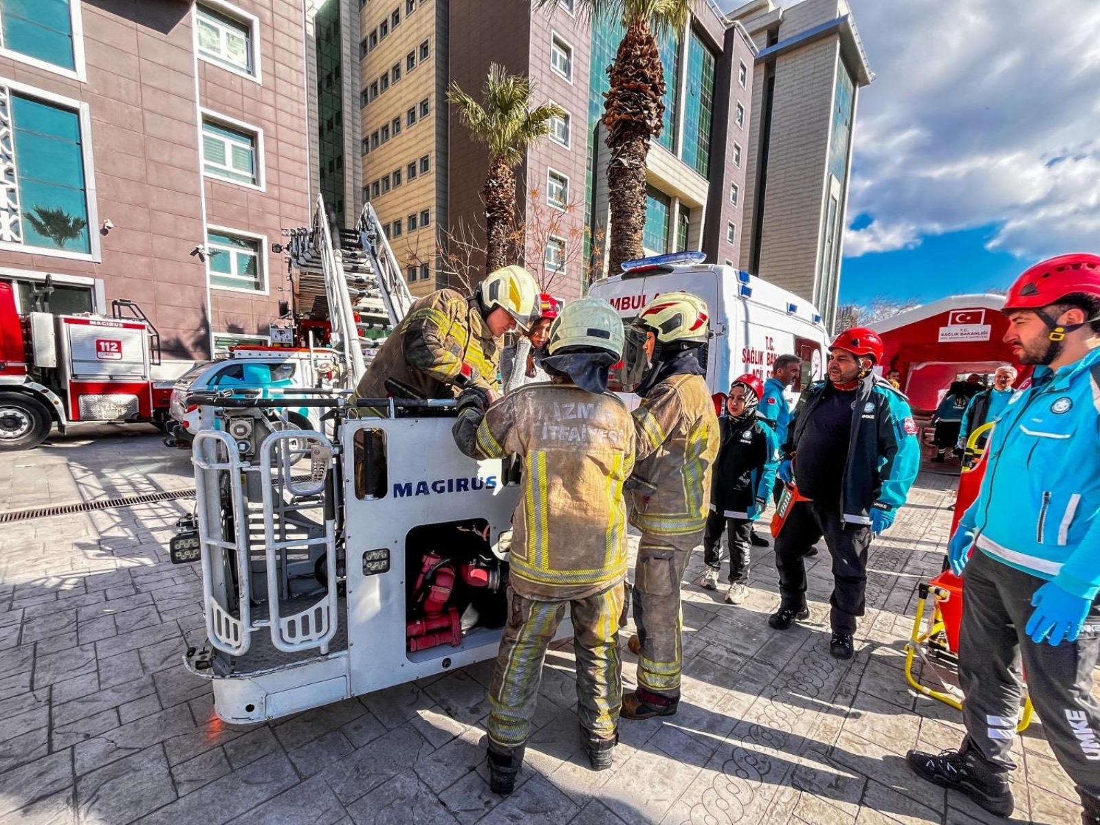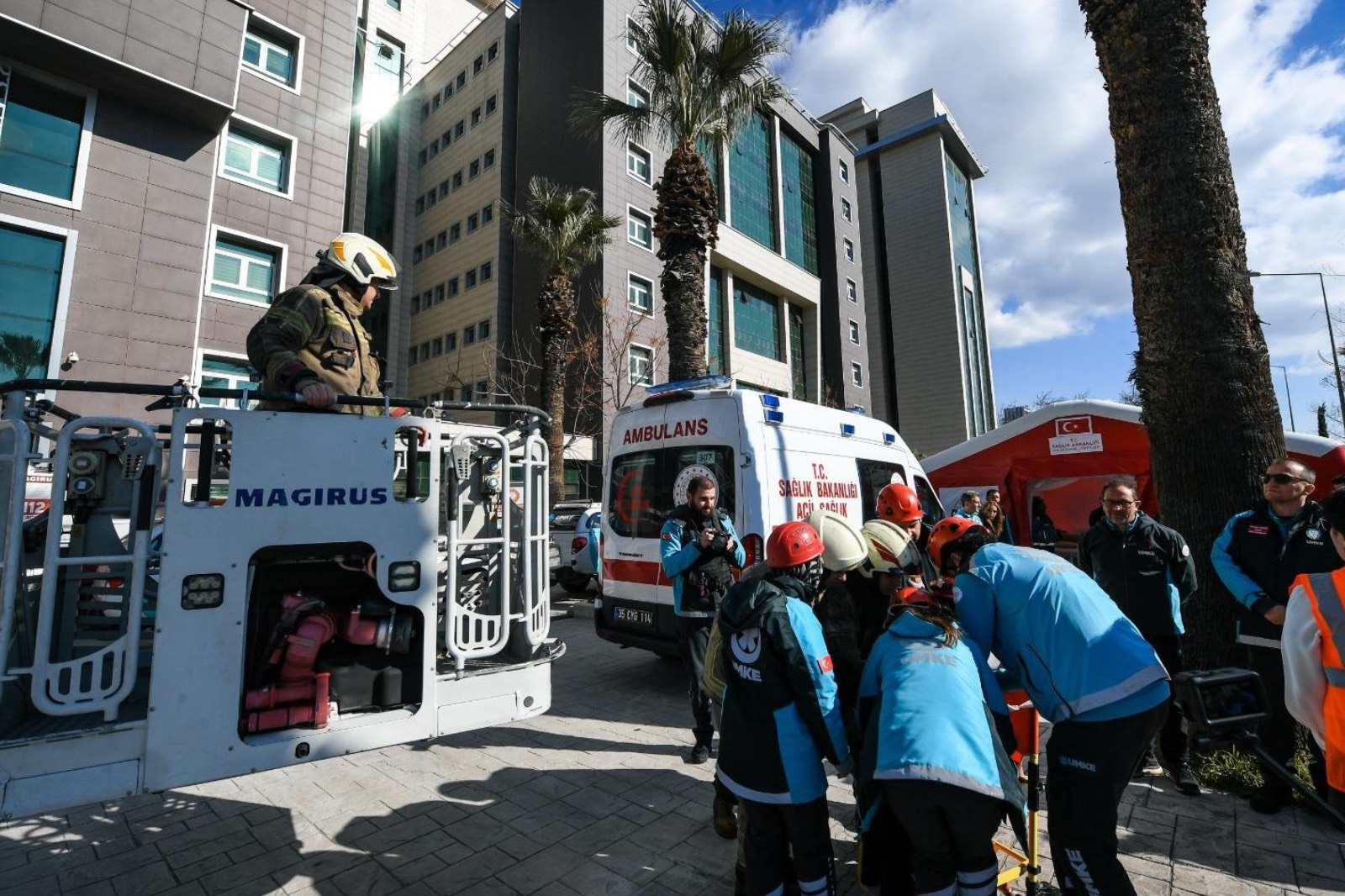 Ölçümlerin ardından bina içerisinde mahsur kaldığı belirlenen personelin itfaiye ekipleri tarafından tahliyesine geçildi. Ekipler, üst katlarda mahsur kalan vatandaşları merdivenli araçla güvenli şekilde aşağı indirdi. UMKE ekipleri tarafından olay yerinde sahra sağlık alanı kurulurken, yaralı olduğu varsayılan kişilere ilk müdahale yapıldı. Emniyet birimleri ise çevrede güvenlik önlemlerini sürdürerek senaryo kapsamında şüpheli şahısların yakalanmasına yönelik çalışma gerçekleştirdi.