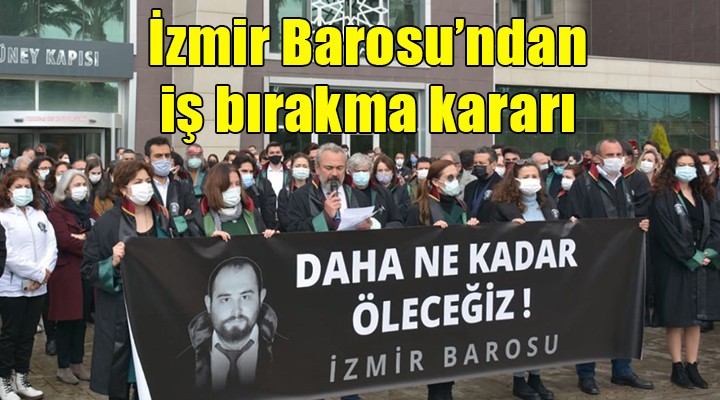 İzmir Barosu Başkanı Özkan Yücel, "19 Mart Cuma günü mesleğe sahip çıktığımızı göstermek, artık öldürülmek istemediğimizi bir kez daha haykırmak ve yetkilileri gereken tedbirleri almak konusunda harekete geçirmek için İzmir Adliyesi’nin hiçbir duruşmasına girmemek konusunda bir kararlılığımız var" dedi.