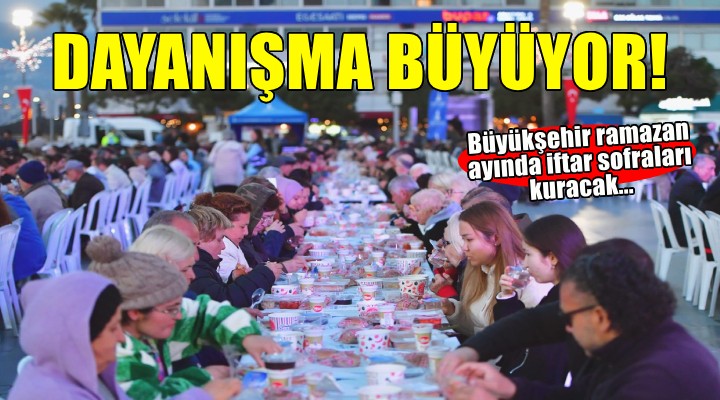 İzmir Büyükşehir Belediyesi, Ramazan ayında ekonomik sıkıntılarla boğuşan yurttaşların yanında olacak. 30 gün boyunca meydanlarda iftar sofraları kurulurken, farklı mahallerdeki ihtiyaç sahibi ailelere sıcak yemek ulaştırılacak. Kent Lokantalarında 80 lira karşılığında ekonomik iftar menüleri sunulacak. Ramazan Bayramı için ihtiyaç sahiplerine nakdi destek ve gıda paketi ulaştırılacak.