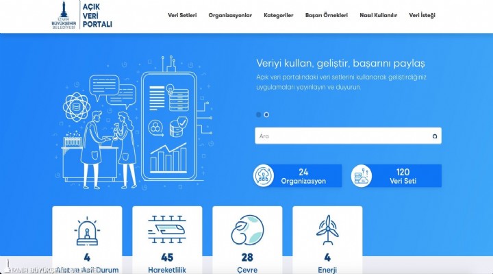 İzmir Büyükşehir Belediyesi ekonomik kalkınma ve demokratik yönetim anlayışının bir parçası olarak kentle ilgili verilerini paylaşmaya başlıyor. Çevreden tarıma, ulaşımdan kriz belediyeciliğine kadar Büyükşehir Belediyesi’nin hizmetleriyle ilgili 10 kategoride 120 veri setinin bulunduğu açık veri portalı, 28 Ocak’ta yapılacak tanıtım toplantısı ile https://acikveri.bizizmir.com üzerinden erişime açılacak.