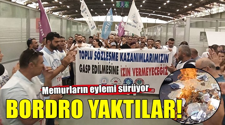 Keleş'in açıklamasının ardından sendika üyesi memurlar maaş bordrolarını yaktı.
