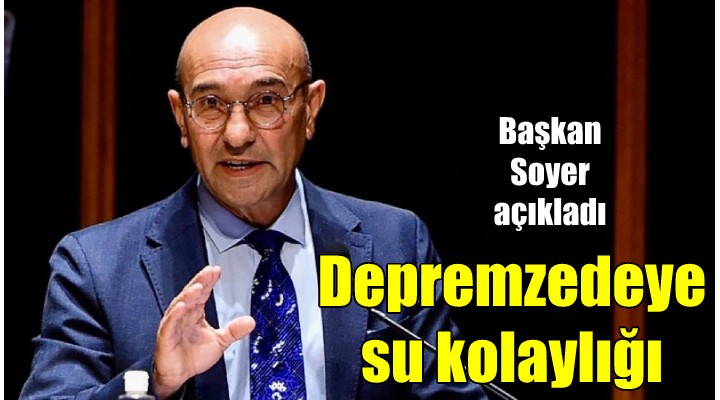 Türkiye'yi sarsan depremin ardından seferber olan İzmir Büyükşehir Belediyesi, yaptığı yardımlar, çadırkent ve hastane hizmetlerinin yanı sıra kente yerleşen afetzedelere de birçok konuda kolaylık sağlıyor. Sosyal medya hesabından bir açıklama yapan İzmir Büyükşehir Belediye Başkanı Tunç Soyer, afetzede yurttaşlardan su abonelik işlemlerinde, güvence bedeli, sayaç bedeli ve su açma ücreti alınmayacağını duyurdu.