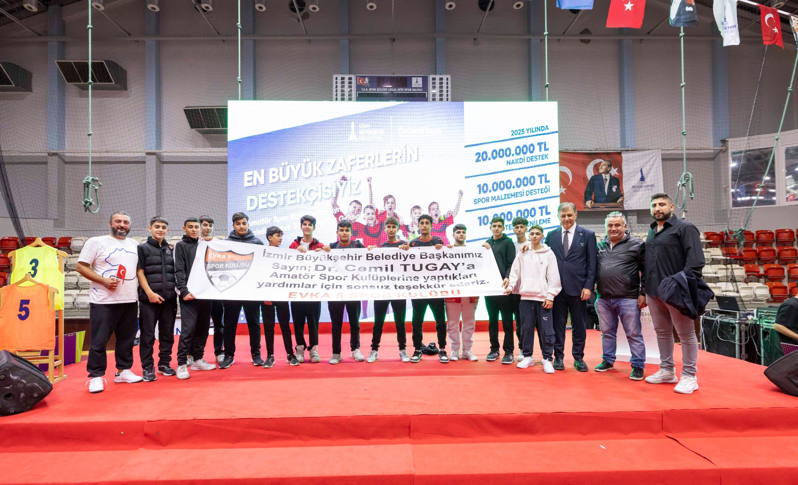 Başkan Tugay, programın sonunda 2024-2025 sezonu U-15 kategorisinde Türkiye 3’üncüsü olan İzmir Spor Kulübü’nün üyeleri ve yöneticileri ile yine 2024 -2025 sezonu Plaj Futbolu Türkiye Şampiyonu Gümüldür Spor Kulübü’ne plaket verdi. İzmir’de 75 yılı aşkın süredir faaliyet gösteren Ülküspor başta olmak üzere İzmirspor, Bayındır, Bornova Yeşilova, Ödemiş, Gürçeşme Kaya, Yeni Evka 4, Kahramanlar ve Damlacık spor kulüplerine teşekkür plaketi verildi. Amatör Spor Kulüpleri Federasyonu İzmir Şubesi Başkanı Efkan Muhtar ise Başkan Tugay’a spora ve sporcuya verdiği desteklerden dolayı plaket sundu. Tören hatıra fotoğrafı çekimi ile sona erdi.
