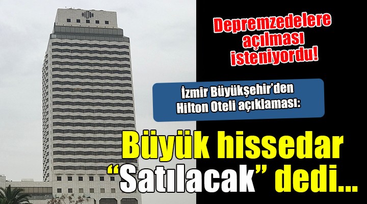"Ülkemizin yaşadığı deprem felaketinin ardından barınma sorunuyla karşı karşıya kalan 10 şehrimizdeki yurttaşlarımızın mağduriyetinin giderilmesi için İzmir Büyükşehir Belediyesi büyük bir çaba ve özveriyle çalışmaktadır. Gerek kurumsal kapasitemizi devreye sokarak gerek yürüttüğümüz kampanyalarla barınma sorununun çözümü için adımlar atıyoruz. Basında ve kamuoyunda yer alan belediyemizin hissedarı olduğu eski Hilton Oteli binasının depremzedelere açılmasına ilişkin haberlere açıklık getirilmesi gereği doğmuştur.