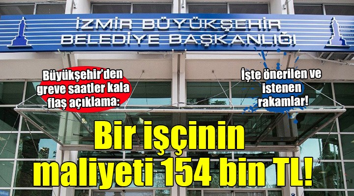 Belediyemizin teklifi, 1 Ocak tarihinden itibaren ikramiye dahil aylık en düşük ücret 59 bin TL, en yüksek 76 bin TL seviyesindedir. İki şirketimizin çalışanları için bu teklifimizin yıllık maliyeti 24 milyar liradır. Genel-İş’in talepleri doğrultusunda oluşacak yıllık maliyet ise 32 milyar TL’yi bulmaktadır. Böyle bir maliyetin belediyemizce karşılanması ne yazık ki mümkün değildir.