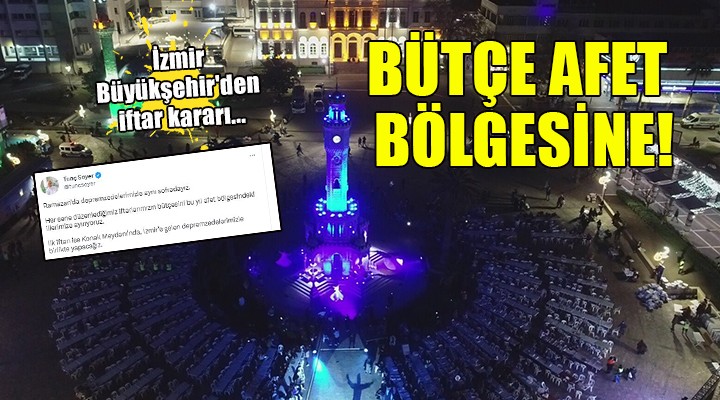 SONKALEİZMİR-Sosyal medya hesabından açıklama yapan Tunç Soyer, bu yıl iftar bütçesini depremzedeler için ayıracaklarını duyurdu. İlk iftarı İzmir Konak Meydanı'nda depremzedelerle yapacaklarını belirten Soyer şunları kaydetti: