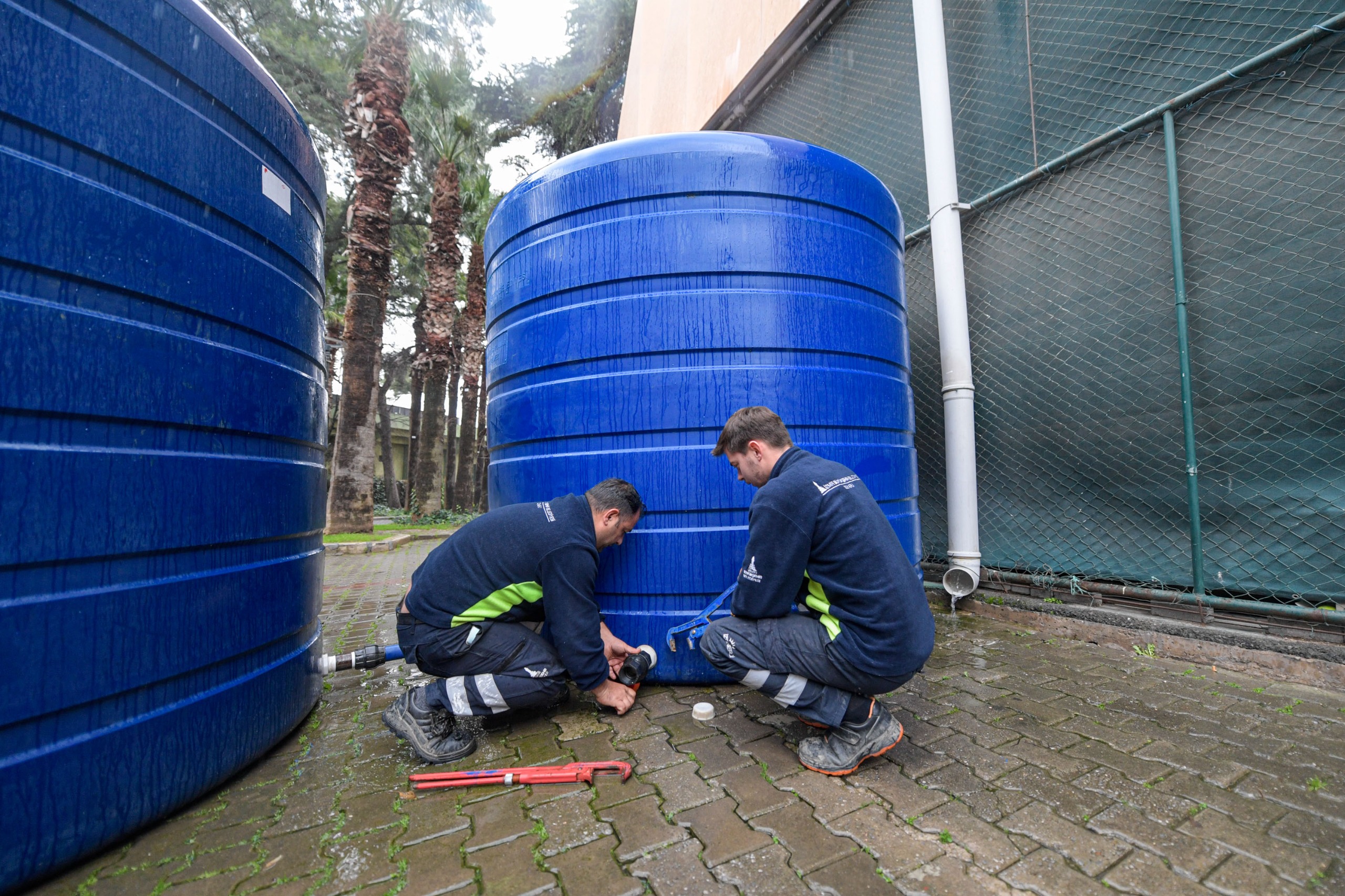İklim Değişikliği ve Temiz Enerji Şube Müdürü Yiğit Beydağ, yağmur suyu hasadının kuraklıkla mücadelede önemli bir araç olduğunu belirterek, çatı alanları uygun tüm belediye hizmet binalarında gerekli tesisat dönüşümlerinin yapıldığını söyledi. Beydağ, Fen İşleri Dairesi Başkanlığı ve ilgili birimlerle koordineli yürütülen çalışmada binaların çatı alanlarının tarandığını ve uygun noktalara depolama sistemlerinin kurulduğunu ifade etti. Yağmur mevsiminin sınırlı bir zaman dilimini kapsadığına dikkat çeken Beydağ, “Bu 3-4 aylık dönemi en verimli şekilde değerlendirmek istiyoruz. Yağan yağmuru mümkün olduğunca depolayıp, hızlı şekilde kullanım alanlarına yönlendiriyoruz. Hedefimiz yağmur suyu hasadını tüm hizmet binalarına yaymak, su kaynaklarını daha verimli kullanmak ve kuraklığa karşı kenti daha dirençli hale getirmek” dedi.