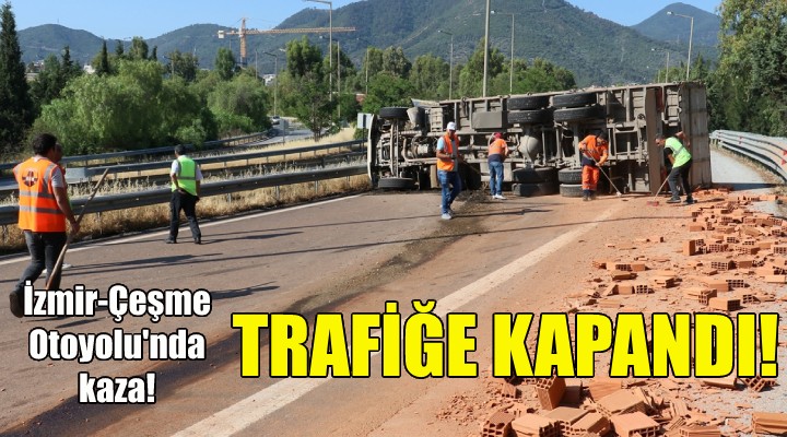 Y.K. idaresindeki 45 AHF 638 plakalı tuğla yüklü kamyon, İzmir-Çeşme Otoyolu İkiztepe Viyadüğü'nde kontrolden çıkarak devrildi.