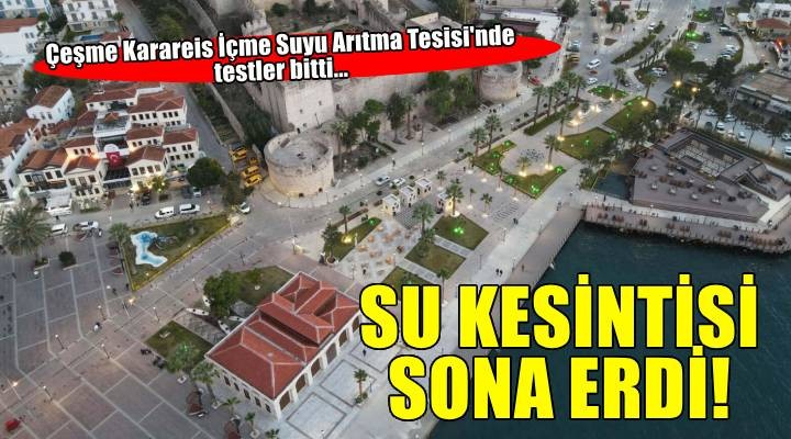 Çeşme ilçesinde içme suyu ihtiyacını karşılayan Kutlu Aktaş Barajı'nda rezervin yüzde 5'in altına düşmesi nedeniyle 25 Temmuz'dan bu yana uygulanan zorunlu su kesintilerinin sona erdiği İZSU tarafından duyuruldu. Konuya ilişkin açıklamada, DSİ tarafından devreye alınan Karareis İçme Suyu Arıtma Tesisi'nde ikinci aşama performans testleri başarıyla tamamlandığı belirtildi. Tesis çıkışındaki suyun mevzuata uygunluğunun onaylanmasının ardından 23 Ağustos itibarıyla içme suyu iletim sistemine verilmeye başlandığı belirtilen açıklamada, "İZSU ekiplerinin dezenfeksiyon ve basınç testlerini de 24 Ağustos'ta tamamlamasıyla birlikte Çeşme'nin içme suyu şebekesine düzenli su verilmeye başlandı. Böylece 24 Ağustos 2025 saat 23.00 itibarıyla zorunlu su kesintisi uygulaması sona erdirildi" denildi.