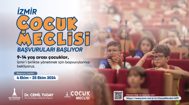 İzmir Büyükşehir Belediyesi Sosyal Hizmetler Dairesi Başkanlığı Çocuk Çalışmaları Şube Müdürlüğü tarafından sürdürülen çalışmalar kapsamında, İzmir Çocuk Meclisi’nin yeni dönem başvuruları 4 Ekim’de başlıyor. İzmir’de yaşayan 9-14 yaş arası tüm çocuklar, 4-25 Ekim tarihleri arasında, https://www.izmir.bel.tr/ ve https://www.bizizmir.com/internet sitelerinde yer alan başvuru formunu doldurarak veya kentin çeşitli noktalarında yer alan duyuru afişlerindeki QR kodu okutarak başvurularını gerçekleştirebilecek. İnternet erişimi olmayan çocuklar İzmir’in çeşitli noktalarında faaliyet gösteren İzmir Çocuk Merkezlerinden başvuru formuna erişebilecek.