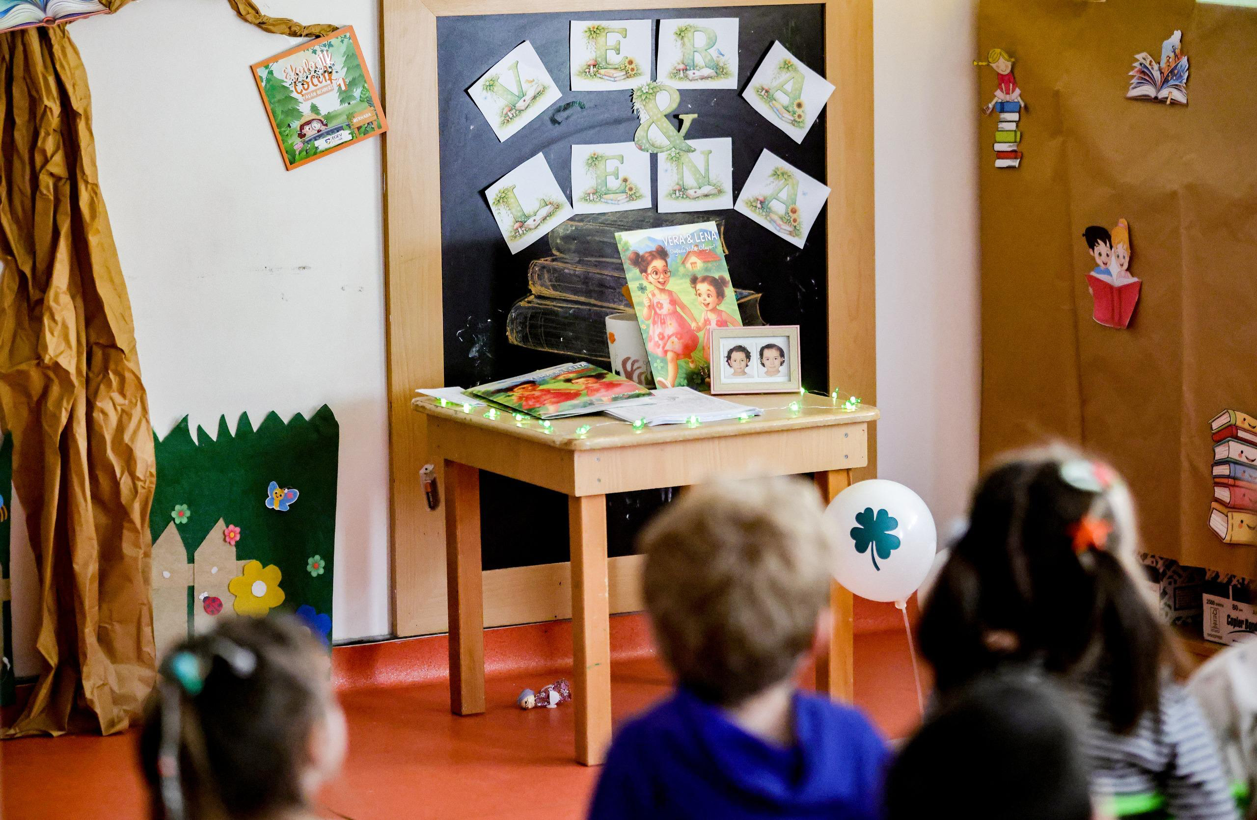 Okul öncesi öğretmeni Nilay Yücel, depremde kaybettiği kızlarının anısını yaşatmak amacıyla kaleme aldığı “Vera & Lena Doğada Neler Oluyor?” adlı kitabı çocuklara okudu. Aynı zamanda 22 öğrencisi bulunan bir okul öncesi öğretmeni olduğunu belirten Yücel, çocuklara depremi ve doğa olaylarını onların anlayabileceği bir dille anlattı. Etkinlikte ayrıca, Yücel’in kızları Vera ve Lena’nın fotoğraflarından yapay zekâ yardımıyla hazırlanan kısa bir video da çocuklara izletildi. Minik öğrencilerin dikkatle takip ettiği video, etkinliğe katılanlara duygu dolu anlar yaşattı.