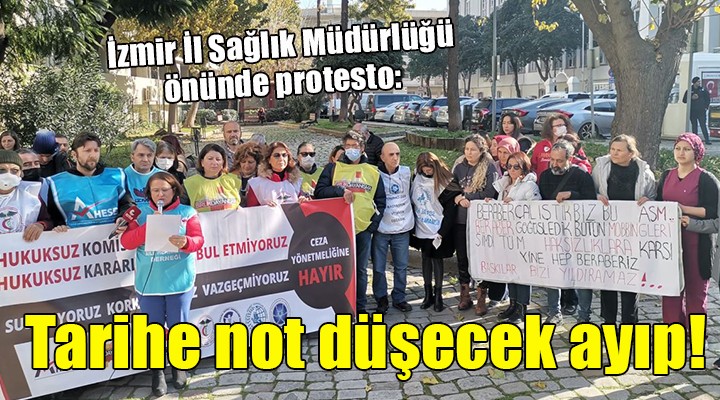 SONKALEİZMİR-İzmir İl Sağlık Müdürlüğü önünde bugün toplanan sağlık meslek örgütleri ile sağlık çalışanları, İzmir'in Torbalı ve Karabağlar ilçesinde görevli iki aile hekiminin sözleşmelerinin yenilenmemesini protesto etti. İzmir İl Sağlık Müdürü Dr. Emre Erkuş'a tepki gösterilen açıklamayı İzmir Aile Hekimleri Derneği (İZAHED) Başkanı Muhteber Çolak okudu.