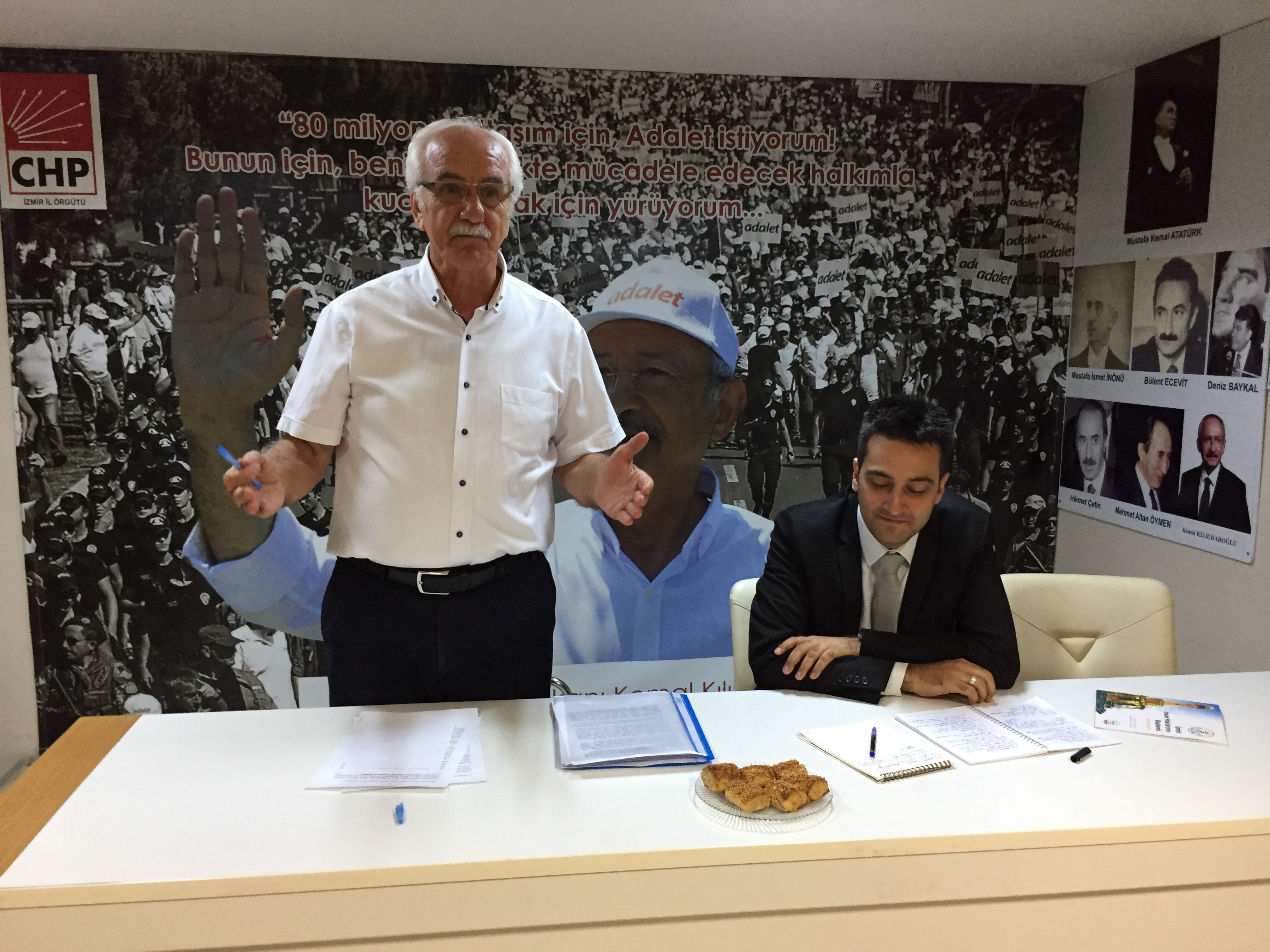 Toplantının açılış konuşmasını yapan CHP İzmir İnsan Haklarından Sorumlu İl Başkan Yardımcısı Memet Kayhan Günal "Yeni bir yola çıkıyoruz. Son yerel seçimler bize gösterdi ki birlikte çalıştığımız takdirde karamsar olmak için hiçbir sebep yok. Ülkemiz ne yazık ki kurucu değerlerinden uzaklaştırılmanın büyük sıkıntısını çekiyor. Biz Türkiye'nin yerinin çağdaş dünya medeniyeti olduğunu biliyoruz. İzmir de Türkiye'nin batıya dönük yüzüdür. Demokratikleşme ateşini buradan yakıp tüm yurt sathında yayacağız. Ülkenin en önemli iki sorununun ekonomi ve demokratikleşme olduğu tespitini yaparak, İzmir'in sahip olduğu potansiyelle ülkeyi dünya standartlarının üstünde bir demokrasiye kavuşturmak için üstüne düşen sorumluluğu yerine getirmeye hazırız. Buna inancımız tamdır." dedi.