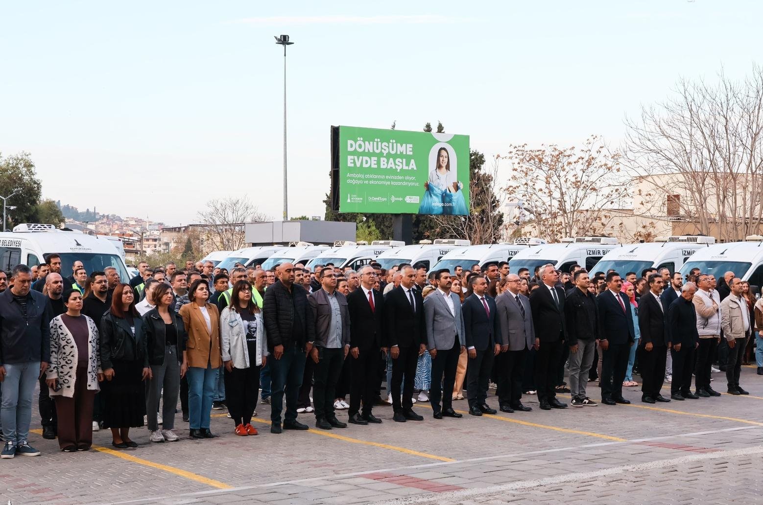 Saatler 9.05’i gösterdiğinde başta Kültürpark hollerindeki hizmet birimleri olmak üzere İZSU, ESHOT, İZFAŞ, İZMİR METROSU, İZDENİZ olmak üzere İzmir Büyükşehir Belediyesi’nin tüm birimlerindeki görevli personel saygı duruşunda bulundu.