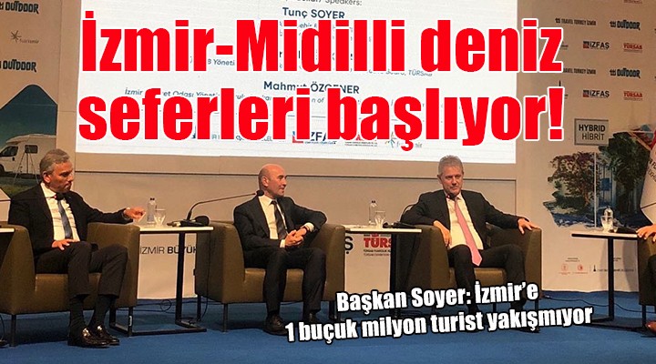 SONKALEİZMİR-İzmir Büyükşehir Belediye Başkanı Tunç Soyer, Gaziemir Fuarizmir'de açılış töreni yapılan Travel Turkey İzmir Fuarı'nın Başkanlar Oturumu etkinliğinde önemli açıklamalar yaptı. TÜRSAB Yönetim Kurulu Başkanı Firuz Bağlıkaya ile İzmir Ticaret Odası Yönetim Kurulu Başkanı Mahmut Özgener'in de konuşmacı olarak katıldığı etkinlikte konuşan Başkan Soyer, Yunanistan'ın Midilli Adası ile ile İzmir arasındaki deniz seferlerinin yeniden başlayacağını açıkladı.