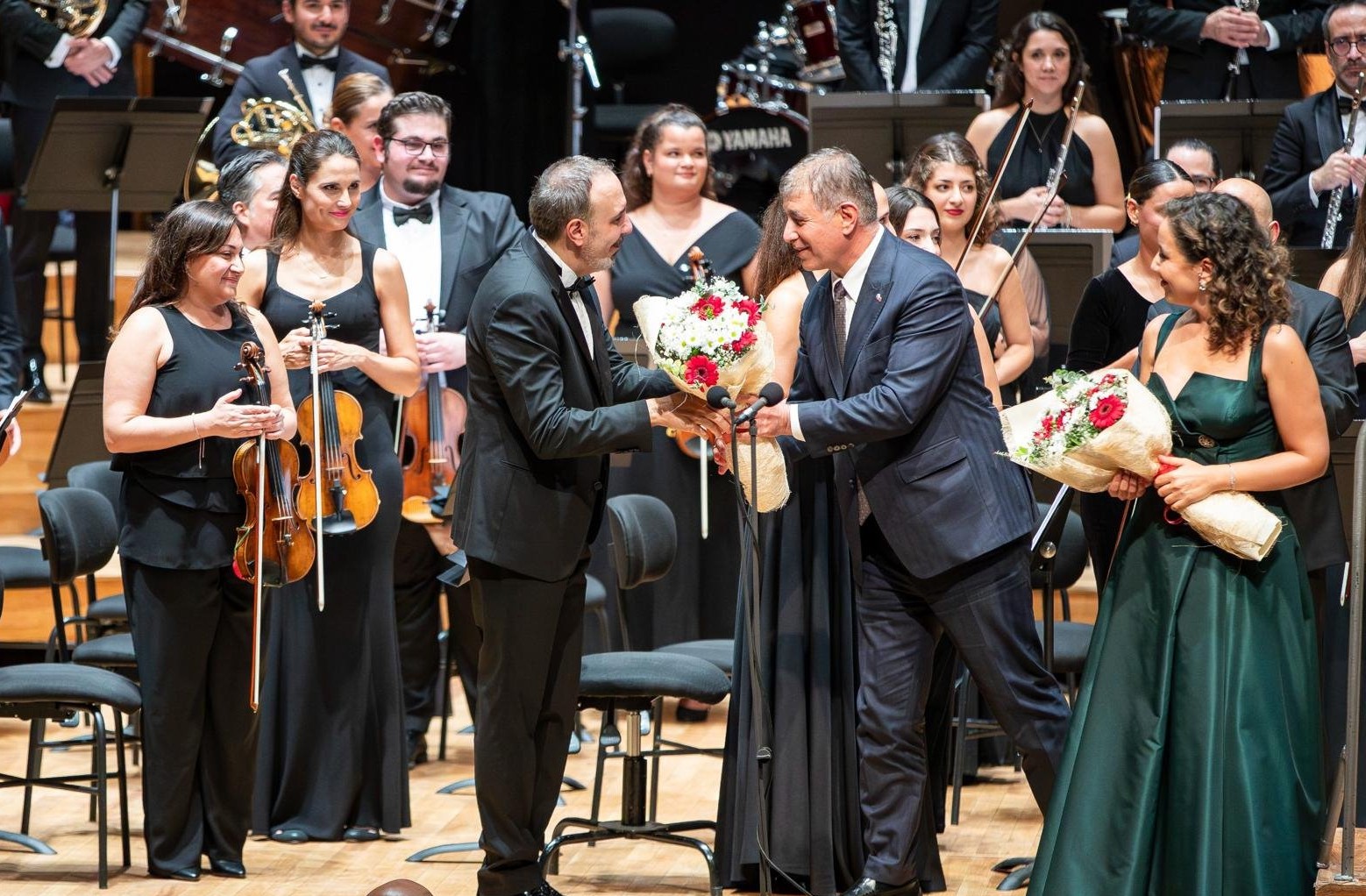 Dinleyicilere gurur dolu anlar yaşatan konser sonunda sanatçılara çiçek takdim eden Başkan Tugay, sahneye eşi Öznur Tugay ve konseri izleyen ünlü Türk orkestra şefi Gürer Aykal'ı da davet etti. Cumhuriyet duygusu ile salonda bulunduklarını ifade eden Başkan Tugay, "O kadar inanılmaz bir kıvanç duydum ve izlerken o kadar duygulandım ki bu gururu bize yaşattıkları için teşekkür ediyorum. İzmir halkı için daha fazlasını yapmak için İzmir Oda Orkestrası'nı kurduk. Her konserde beni bir kez daha gururlandırıyorlar" ifadelerini kullandı.