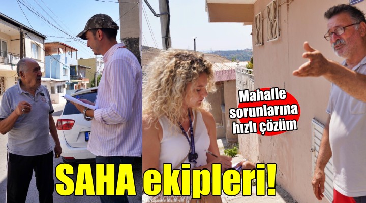 İzmir Büyükşehir Belediye Başkanı Dr. Cemil Tugay’ın toplum katılımıyla sorunları yerinde analiz edilerek çözüme kavuşturulması için görevlendirdiği İzmir SAHA (Sokakta Analiz Hizmette Adalet) ekipleri İzmir sokaklarında teker teker yurttaşların kapısını çalmaya başladı. Öncelikle çözüm bekleyen mahallere giderek sorunları kaynağından tespit eden İzmir SAHA ekipleri, ilk olarak Karabağlar Gazi, Özgür ve Devrim mahallelerinde çalışmalarına başladı. Kapıda İzmir Büyükşehir Belediyesi ekiplerini sevinçle karşılayan mahalle sakinleri belediyeye teşekkürlerini iletti. Yurttaşların sorunlarını, taleplerini ve iletişim bilgilerini alan ekipler, topladıkları talepleri öncelik sırasına göre not alıp analiz ederek çözüme kavuşturulmak üzere yetkili birimlere iletti.