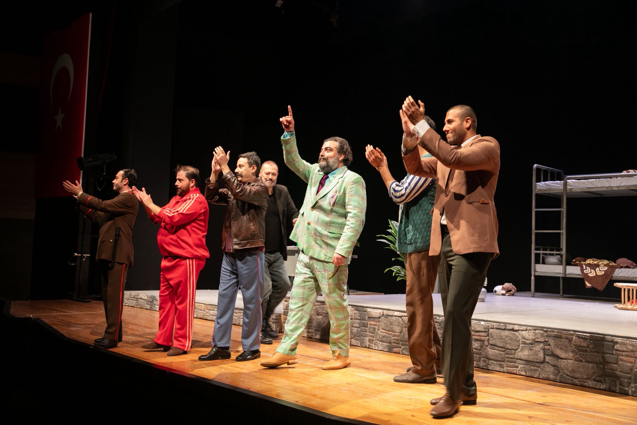 Türkiye'deki adalet sisteminin işleyişindeki çarpıklıklar üzerine usta tiyatrocu Ferhan Şensoy’un yazdığı, İzBBŞT Genel Sanat Yönetmeni Yardımcısı Harun Özer’in yönettiği oyunda bir hata sonucu hapishaneye düşen üç arkadaşın başından geçenler kara komedi tarzında ele alınıyor. Oyunda Ayhan Anıl, Bahadır Buyruk, Burak Budak, Mustafa Can Yılmaz, Okan Kam ve Candaş Yılancı rol alıyor. Oyunun ışık tasarımını Kaan Burmaoğlu, sahne tasarımını Anıl Işık, giysi tasarımını Deniz Bilgili yaptı.
