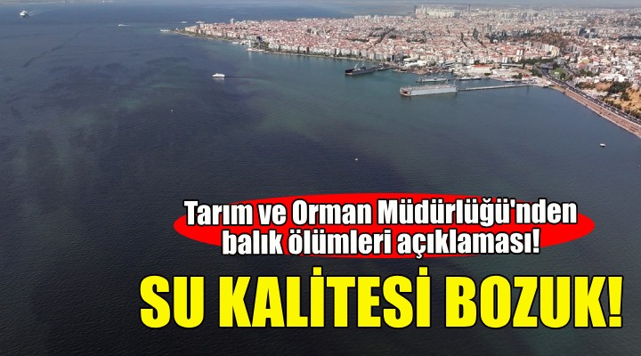 "(Karşıyaka) Buna göre, su sıcaklığı 28,8 derece, pH değeri 8,33, çözünmüş oksijen değeri 0,320 miligram/litre olarak ölçülmüştür. Olay mahallinden su ve balık numuneleri alınarak ilgili laboratuvarlara gönderilmiş olup analiz sonuçları beklenmektedir. Konu hassasiyetle takip edilmektedir. Balık ölümlerinin artan sıcaklıklar, besin tuzları ve diğer kirleticiler dolayısıyla su kalitesindeki bozulma kaynaklı olduğu değerlendirilmektedir."