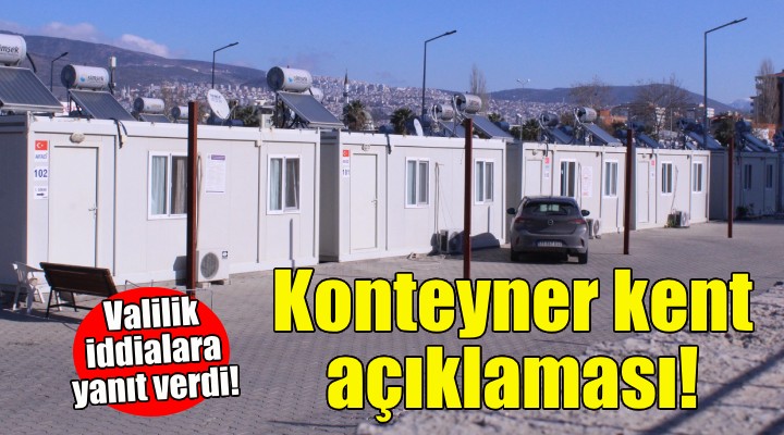 İzmir depreminden kaynaklı konaklayanlarla ilgili, hak sahibi vatandaşların tamamına konutları teslim edilmiş ve konteynerleri boşaltmışlardır. Şu an konteynerlerde kalanlar evleri hasarlı olmamasına rağmen süreç içinde konteyner kente yerleşmiş kişiler olup, bu vatandaşlarımızın evlerinde hasar olmadığı gibi herhangi bir hak sahipliği de bulunmamaktadır.