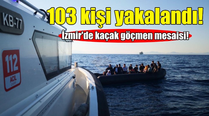 Sahil Güvenlik ekipleri, Karaburun açıklarında ise durdurdukları lastik bottaki 11'i çocuk 32'i kaçak göçmeni yakaladı.