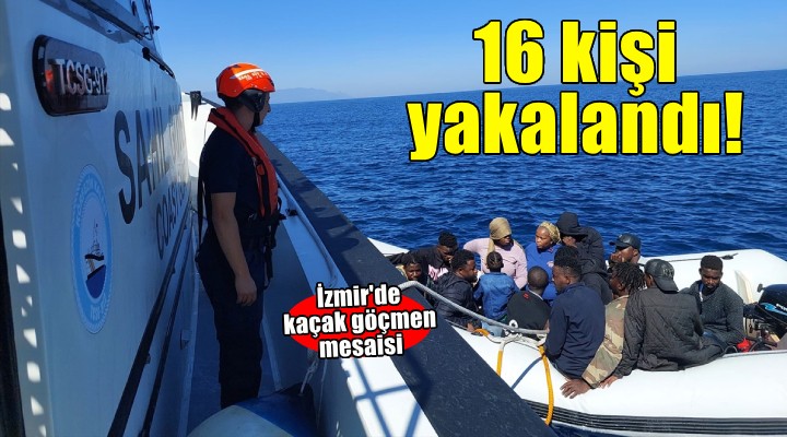 Ekipler tarafından durdurulan lastik bottaki 1'i çocuk 16 düzensiz göçmen yakalandı.