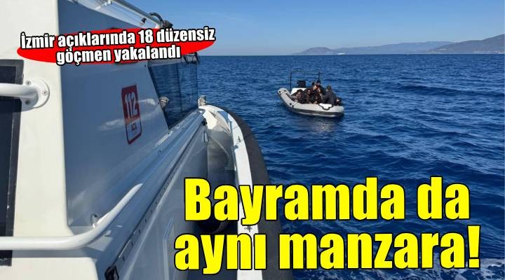 Ekiplerce durdurulan fiber karinalı lastik bottaki 18 düzensiz göçmen yakalandı.