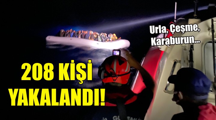Öte yandan Karaburun ilçesi açıklarında kaçak göçmenlerin olduğu lastik botun motor arızası nedeniyle sürüklendiği ve yardım talebinde bulunulduğu bilgisi üzerine görevlendirilen Sahil Güvenlik botu tarafından lastik bot içerisindeki 41 göçmen kurtarılırken yine aynı ilçe açıklarında yasa dışı yollarla yurt dışına çıkmaya çalışan 51 göçmen Sahil Güvenlik gemisi tarafından durdurularak yakalandı.