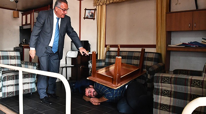 ğitimde konuşan İtfaiye Eğitim Şube Müdürü İsmail Özgültekin, Milli Eğitim Müdürlüğü ile yapılan protokol gereği halk eğitim merkezlerinde halka, Deprem Simülasyon Evi'nde ise yılda 40 bin öğrenciye temel afet bilinci eğitimi verdiklerini ifade ederek şöyle konuştu: “Muhtarlara verdiğimiz eğitimi de İzmir geneline yayacağız. İlçelere gidip bu eğitimi vereceğiz. Onların mahallelerindeki vatandaşları örgütlenmesini sağlayacağız. Küçük ev kazalarında ne yapılması gerektiğini de anlatacağız” dedi.
