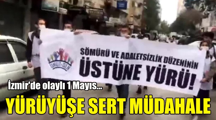 Sabah erken saatlerde, Alsancak semtindeki Kıbrıs Şehitleri Caddesi'ne gelen, İzmir Umut- Sen Kolektifi üyesi 10 kişilik grup, "Sömürü ve Adaletsizlik Düzeninin Üstüne Yürü" yazılı pankart açtı. "Yaşasın 1 Mayıs" sloganları atıp pankartla birlikte, kepenklerin kapalı olduğu boş sokaktan Gündoğdu Meydanı'na yürümek isteyen gruba polis müdahalesi geldi.