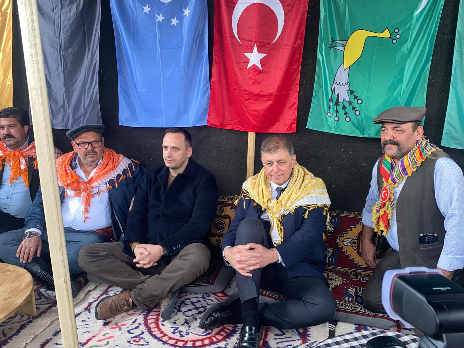 Yürüyüşün ardından rekreasyon alanına gelen Tugay ve Eşki, burada kurulan Yörük çadırlarını ziyaret etti.
