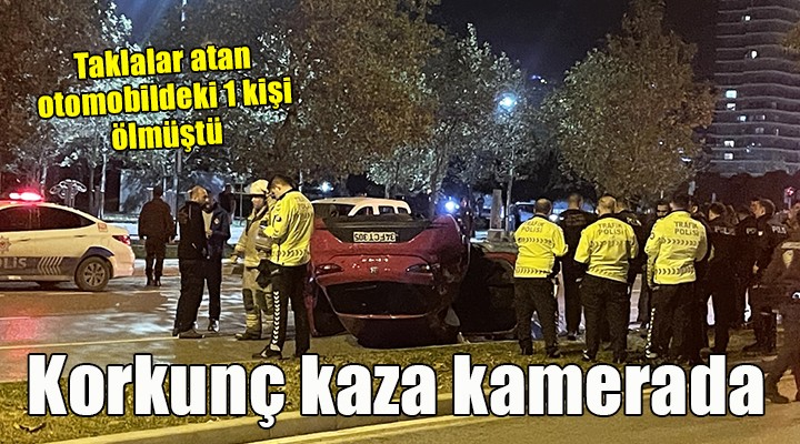 Görüntülerde, yolda hızla ilerleyen otomobilin döner kavşaktaki refüje çarpıp takla atması yer alıyor.