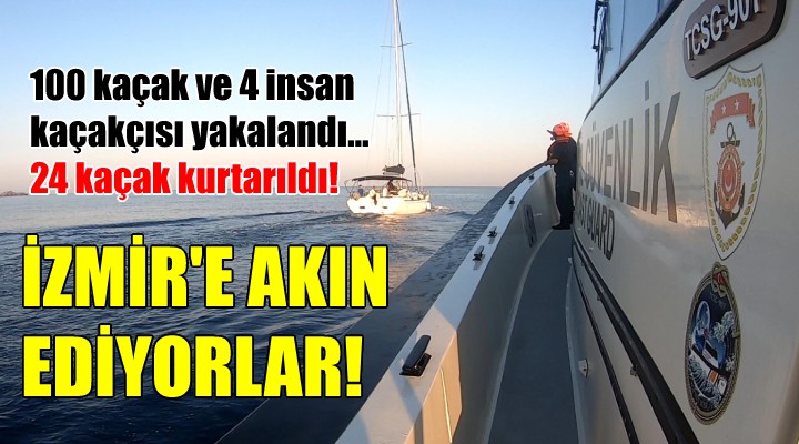 Sahil Güvenlik Komutanlığı, dün saat 06.30 sıralarında Aliağa ilçesi açıklarında, yelkenli tekne içerisinde bir grup kaçak göçmenin bulunduğu ihbarını aldı. Bunun üzerine harekete geçen Sahil Güvenlik Botu, hareket halinde olan yelkenli tekneyi durdurup, içerisindeki 100 kaçak göçmen ve 4 organizatör şüphelisini yakaladı. Gözaltına alınan 4 organizatör şüphelisinin işlemlerinin devam ettiği belirtildi.
