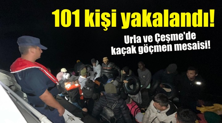 Ekipler, durdurdukları iki lastik bottaki 21'i çocuk 101 kaçak göçmeni yakaladı. Kaçak göçmenler, işlemlerinin ardından İl Göç İdaresi Müdürlüğüne gönderildi.