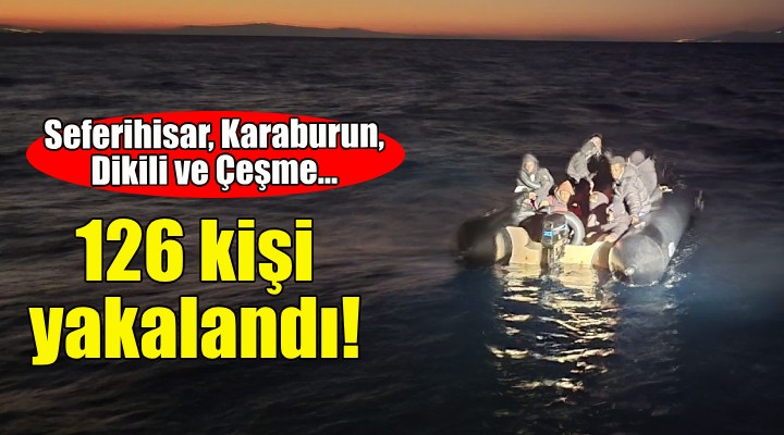 Karaburun'da 37, Dikili'de 34 ve Çeşme'de 34 olmak üzere toplam 126 kaçak göçmen yakalandı.