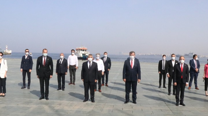 Kutlama kapsamında, Türk bayraklarıyla süslenen Deniz Kuvvetleri Komutanlığı'na ait 2 savaş gemisi İzmir Körfezi'ne demirledi.