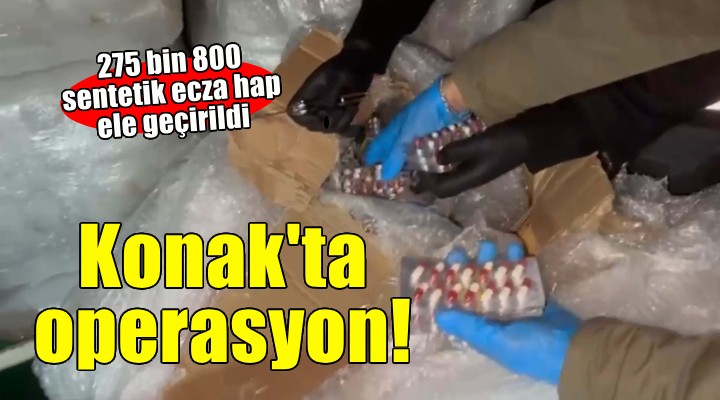 İzmir Cumhuriyet Başsavcılığı koordinesinde, İzmir Emniyet Müdürlüğü Narkotik Suçlarla Mücadele Şube Müdürlüğü ekipleri tarafından bir adreste yüklü miktarda uyuşturucu madde bulunduğu tespit edildi. Teknik ve fiziki takibin ardından adrese operasyon düzenlendi. Operasyonda 275 bin 800 adet sentetik ecza hap ele geçirildi. Sentetik ecza hapların 'torbacı' olarak tabir edilen sokak satıcılarına dağıtılacağı tespit edildi. Gözaltına alınan 1 şüpheli sevk edildiği adliyede çıkarıldığı mahkemede tutuklandı.