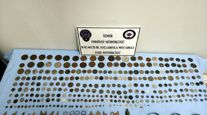 Kaçakçılık Suçlarıyla Mücadele Şube Müdürlüğü, Kültür ve Tabiat Varlıkları Kaçakçılığı Büro Amirliği ekipleri, E.H.'nin Çiğli ilçesindeki evinde çok sayıda tarihi eser sakladığı bilgisi üzerine harekete geçti. Belirlenen adrese operasyon düzenleyen ekipler, Roma, Bizans ve çeşitli İslam devletlerinin dönemlerine ait 300 sikke, 9 bronz mühür, 4 yüzük, 3 bileklik, 4 kolye ucu, 4 altın takı parçası ve metal heykelcik ele geçirdi. Gözaltına alınan E.H., emniyetteki ifadesinin ardından serbest bırakıldı. Hakkında açılan soruşturma dosyası ise savcılığa gönderildi.