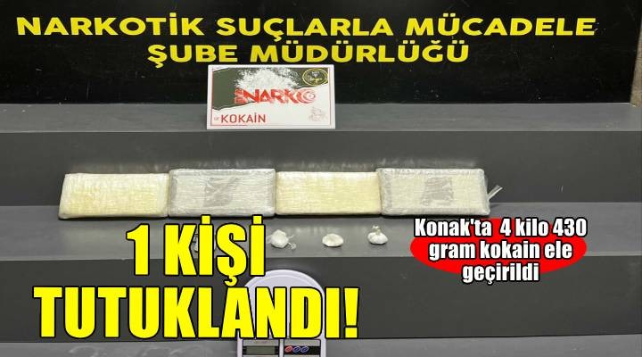 İzmir Cumhuriyet Başsavcılığı koordinesindeki Narkotik Suçlarla Mücadele Şube Müdürlüğü ekipleri, Konak ilçesindeki bir evde uyuşturucu bulunduğu ihbarı üzerine harekete geçti. Uyuşturucunun 'torbacı' tabir edilen sokak satıcılarına dağıtılacağı tespit edildi. Önceki gün eve gerçekleştirilen operasyonda 4 kilo 430 gram kokain ele geçirildi. Operasyonda G.P. gözaltına alındı. Emniyetteki işlemlerinin ardından adliyeye sevk edilen G.P., tutuklandı.