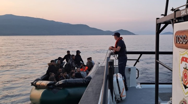 Dikili açıklarında, Sahil Güvenlik Mobil Radarı tarafından tespit edilen lastik bottaki 25 düzensiz göçmen yakalandı.