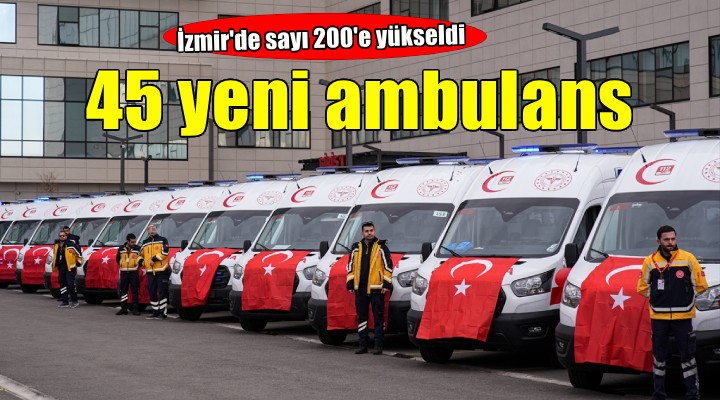 İzmir’de 45 yeni ambulansın hizmete alım töreni İzmir Şehir Hastanesi’nde gerçekleştirildi. İzmir Valisi Süleyman Elban’ın da katıldığı törene AK Parti Genel Sekreteri ve AK Parti İzmir Milletvekili Eyyüp Kadir İnan, İzmir İl Sağlık Müdürü Ayhan Kul, AK Parti İzmir İl Başkanı Bilal Saygılı , MHP İzmir İl Başkanı Veysel Şahin, bazı milletvekilleri ve çok sayıda sağlık çalışanı katıldı.