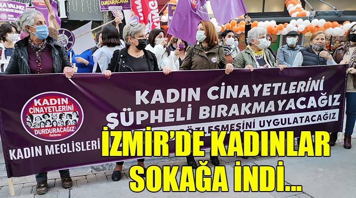 SONKALEİZMİR-İzmir'de Alsancak Kıbrıs Şehitleri Caddesi'nde toplanan kadınlar, 8 Mart Dünya Kadınlar Günü eylemi ile şüpheli kadın cinayetlerinin aydınlatılmasını istedi. Kadın Cinayetlerini Durduracağız Platformu, Kadın Meclisleri, İşçi Kadın Meclisleri ve Üniversite Kadın Meclisleri'nin destek verdiği eylemde "Yaşasın 8 Mart, yaşasın kadınlar", "Kadın cinayetlerini durduracağız", "Asla yalnız yürümeyeceksin", "İstanbul Sözleşmesi yaşatır", "Kadınlar eşit yaşayacak" sloganları atıldı.