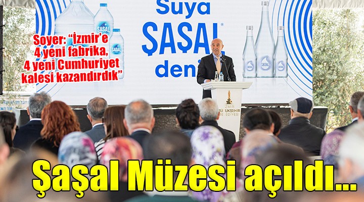 Uzun yıllar atıl kalmış olan Şaşal Su Fabrikası’nı büyük bir coşkuyla açtıklarının, şehri bir Cumhuriyet çeşmesi olan Şaşal’a kavuşturduklarının altını önemle çizen Başkan Tunç Soyer, “Fabrikamızda, geçtiğimiz Eylül ayından bu yana 0,33’lük ve 0,75’lik cam ve 5 litrelik pet şişelerde üretim devam ediyor. Artık 3 binin üzerine market ve küçük işletmenin raflarında Şaşal var. Bugün İzmirliler pırıl pırıl Şaşal Suyu’na İzmir’in 30 ilçesinde ulaşabiliyorsa, bu bizim için en büyük mutluluktur. Suya adını veren bu markayı İzmir’e yeniden ulaştırmış olmak alnımızın akıdır. Bugün fabrikamızda, bu Cumhuriyet markasını daha da ileriye taşıyan iki önemli adım atıyoruz. Birincisi Büyük Dolum Tesisimiz. Büyük Dolum Tesisi’nin faaliyete geçmesiyle, Şaşal Su Fabrikası’nın tek vardiyada 16 bin 800 şişe olan günlük üretim kapasitesi 10 kattan fazla artacak. Büyük Dolum Tesisimizde tek vardiyada 0,5 litrelik pet şişelerden 168 bin adet veya 1,5 litrelik pet şişelerden 112 bin adet dolum yapabileceğiz. Diğer önemli adımımız ise Şaşal suyunun doğduğu Tahtalı Havzası’nı ve bir kültür mirası olan Şaşal’ı tüm hatlarıyla anlatan Müzemiz. Burada gerçekleştirdiğimiz turlarla, hemşerilerimizi Şaşal Suyu’nun tarihinde ve bugününde bir yolculuğa çıkarıyoruz” diye konuştu.
