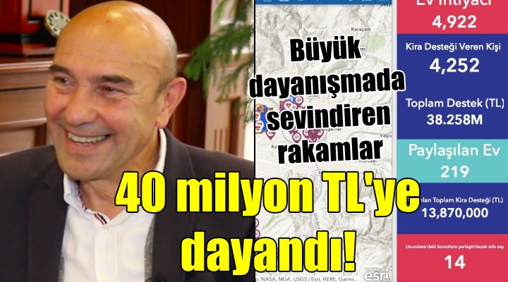 İzmir depreminin ardından depremzedeleri ve onlara destek olmak isteyenleri buluşturan “Bir Kira Bir Yuva” kampanyası kapsamında taahhüt edilen kira desteği tutarı 38 milyon 89 bine ulaştı. 4 bin 243 destekçi tarafından deprem mağduru ailelere toplamda 13 milyon 870 bin TL ödeme yapıldı. Kampanya kapsamında depremzedelere kapılarını açmak için bildirilen daire sayısı da 219'a ulaştı.