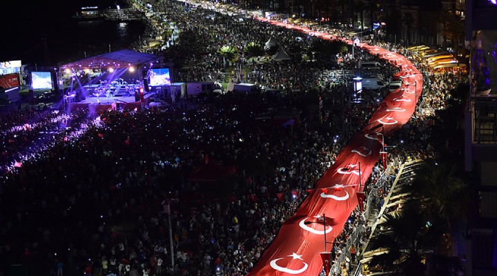 İzmirliler, 29 Ekim günü saat 20.30'da Konak Pier önünde açılacak 350 metrelik Türk bayrağını, Cumhuriyet Meydanı'ndan başlayarak Gündoğdu Meydanı’na kadar taşıyacak. Meşale ve bayraklarla gerçekleştirilecek Fener Alayı’na ise İzmir Büyükşehir Belediye Bandosu marşlarla eşlik edecek. Saatler 21.00’i gösterdiğinde ise Leman Sam ve Yeni Türküsahne alacak.
