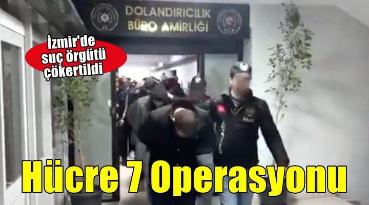 Bakan Yerlikaya, sosyal medya hesabından yaptığı açıklamada, İzmir Cumhuriyet Başsavcılığı ile Emniyet Genel Müdürlüğü Asayiş Daire Başkanlığı koordinasyonunda İzmir merkezli 13 ilde düzenlenen 'Hücre-7' operasyonlarında; elebaşılığını C.A.'nın yaptığı organize dolandırıcı suç örgütünün çökertildiğini belirtti. Örgüt elebaşının içerisinde bulunduğu 88 şüphelinin yakalandığını, 61'inin tutuklandığını, 27'sinin adli kontrolle serbest bırakıldığını aktaran Yerlikaya, çok sayıda ruhsatsız tabanca, muhtelif miktarda uyuşturucu madde, döviz ve Türk lirası ile dijital materyalin ele geçirildiğini aktardı.