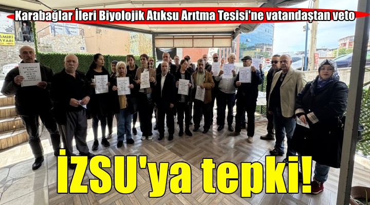 Kafenin önünde ellerinde, "Karabağlar İleri Biyolojik Atıksu Arıtma Tesisi istemiyoruz" yazılarını açan vatandaşlar, Karabağlar Belediye Başkanı Helil Kınay'ın toplantıya katılmamasına tepki gösterdi.