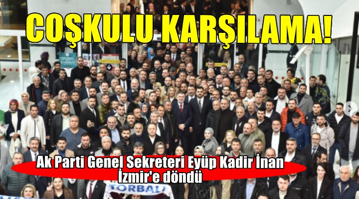 Ak Parti'nin 8. Olağan Kongresiyle beraber Genel Sekreterlik görevine başlayan İzmir Milletvekili Eyüp Kadir İnan İzmir'e döndü. AK Parti İl Başkanı Bilal Saygılı ve il teşkilatı, İnan'ı coşkuyla karşıladı. O anları sosyal medya hesabından paylaşan Saygılı şu ifadeleri kullandı: